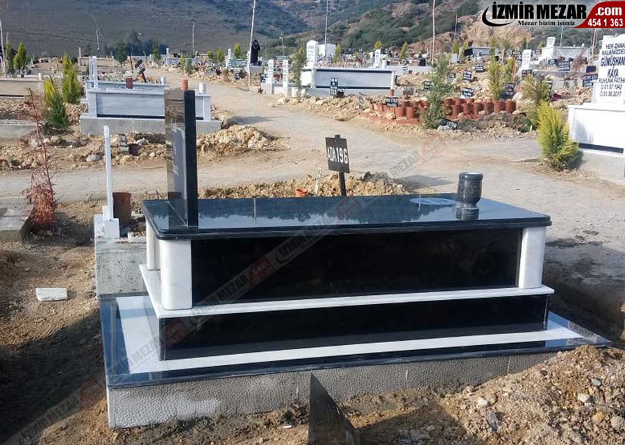 İzmir’ de mezar yapımı ve mezarın yerine kurulumu büyük bir özen ve ustalıkla yapılmaktadır. Keza diğer 30 bayiimizde de aynı titizlikle çalışılmaktadır. Mezar taşlarının yerine montajı veya mezar kurulumunda kilitli sistem veya çelik dübel vida sistemi uygulanmaktadır. Mezar netice itibariyle dış mekânda kalan, yazın sıcak güneşine ve kışın soğuğuna dayanmak zorunda olan bir yapıdır. Sadece yapıştırılan, birbirine geçmeli sistemle bağlanmayan granit parçalar uzun vadede hasar görecektir. Güneşin ultraviyole ışınları yapıştırıcının etkisini zamanla yok edecektir. Bu yüzden vidalı ve kilitli sistemle mezar montajı yapılmaktadr.