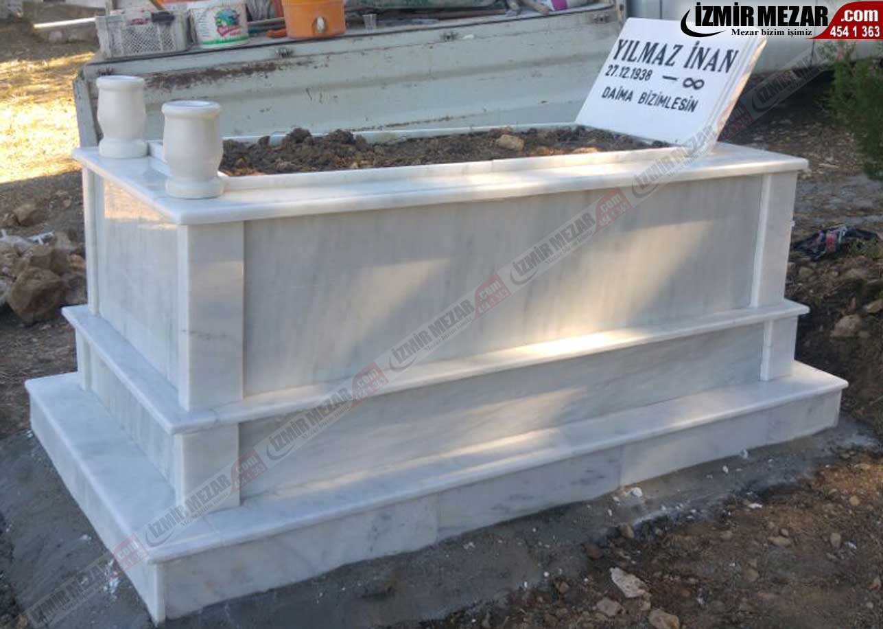 İzmir’ de mezar yapımı ve mezarın yerine kurulumu büyük bir titizlik ve ustalıkla yapılmaktadır. Keza diğer 30 bayiimizde de aynı titizlikle çalışılmaktadır. Mezar taşlarının yerine montajı veya mezar kurulumunda kilitli sistem veya çelik dübel vida sistemi ile mezar taşı kurulmaktadır. Mermer mezarda olsa, granit mezarda olsa neticede dış mekânda kalan, yazın sıcak kavurucu güneşine ve kışın soğuğuna dayanmak zorunda olan bir yapıdır. Sadece yapıştırılan, birbirine geçmeli sistemle bağlanmayan granit parçalar uzun vadede hasar görecektir. Güneşin ultraviyole ışınları yapıştırıcının etkisini zamanla yok edecektir.