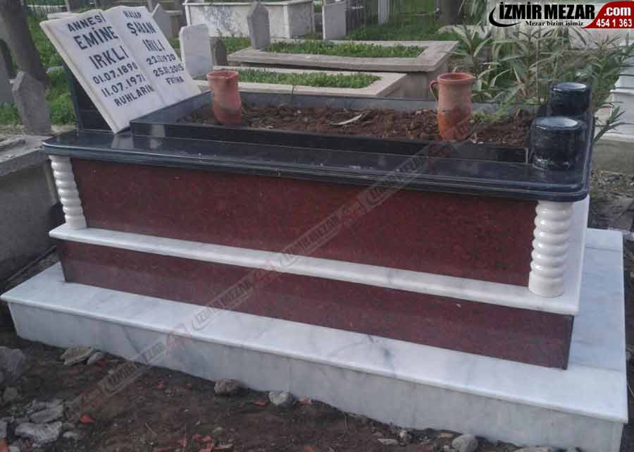 Mezar Taşı : 1. sınıf Absolute Black Granit + New İmperial Red Granit +Muğla mermer