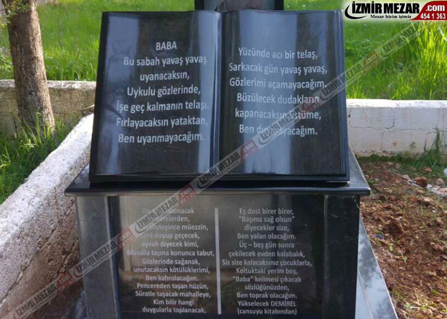 Mezar Taşı Cinsi: Absolute black granit + Yükselecek Demirel'in ünlü Baba şiirinin mezara işlenmesi.