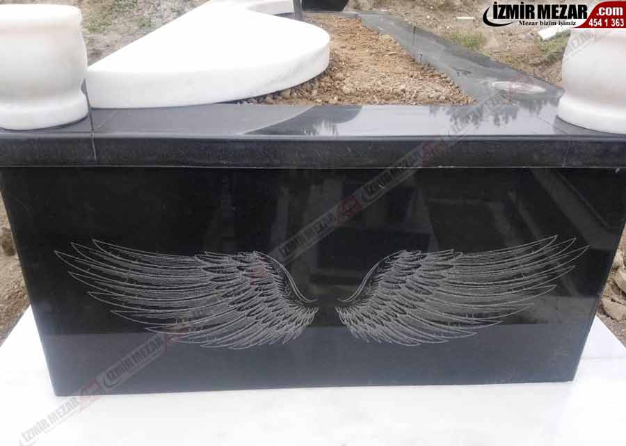 Mezar Taşı : 1.sınıf absolut Black granit + Muğla mermer